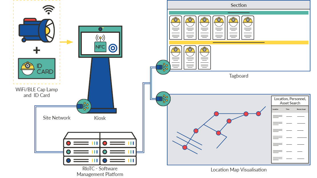 Essential for maximising the value provided by your personnel’s onsite equipment such as WiFi/BLE cap lamps and belt tags. This solution includes our device management platform which enables: