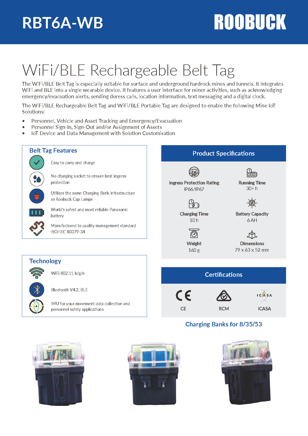 Roobuck’s WiFi/BLE belt tags and WiFi/BLE portable tags integrate into the following Mine IoT Solutions for use in underground and open cut mines: